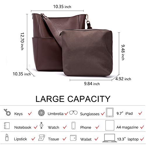 - Design: The bucket bag made by professional artisans, appearance concise, atmosphere and powerful. Large capacity designed allow you can comfortably hold an iPad, iPhone 6s Plus, wallet, cosmetic, and other daily things, perfect to use as daily handbags for working, shopping, or dating.